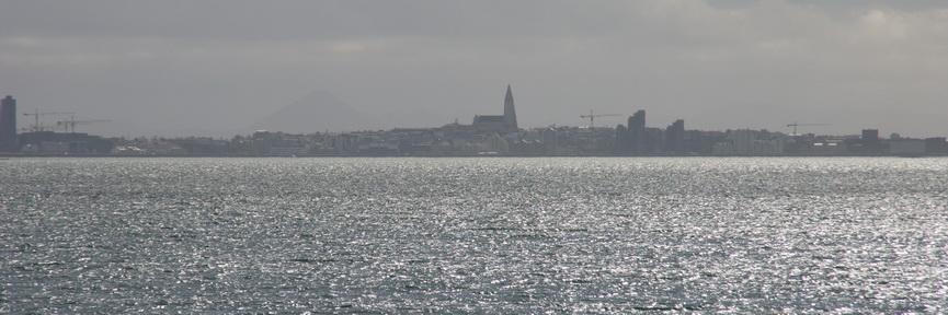 Blick nach Süden, über die Bucht von Reykjavik, auf die Skyline der Inselhauptstadt |