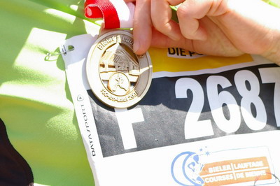 Die Frage auf ein "noch einmal Biel?" ist im Moment nicht passend, bewirkt nur einen verkrampften und leicht bösen Blick. Die Freude aber, es geschafft zu haben, egal ob Marathon oder 100 km, ist einfach wahnsinnig groß. Mit Stolz wird die Medaille präsentiert, wofür mit langem physischem Kampf, viel Kopfarbeit, aber auch einem nicht unerheblichem Spaßfaktor bezahlt wurde. |